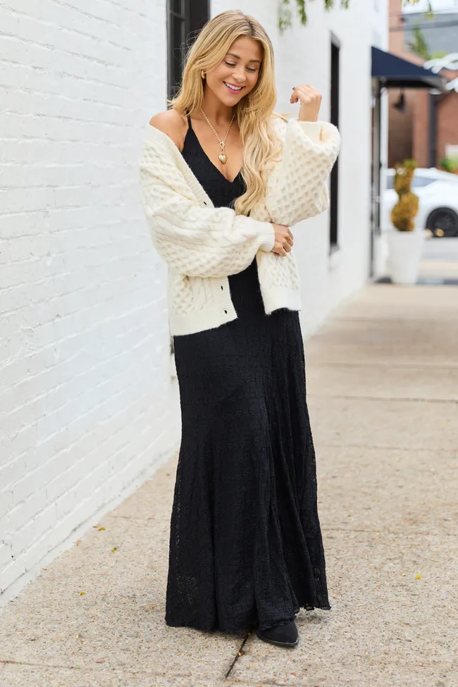 Hyacinth Black Lace Godet Slip Dress