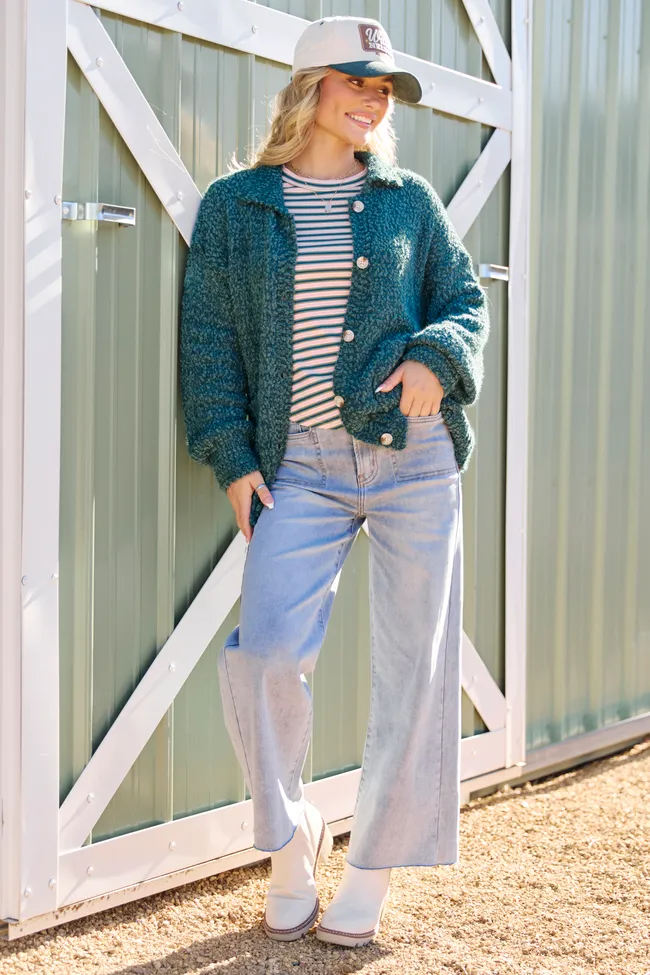Teal Collared Boucle Cardigan