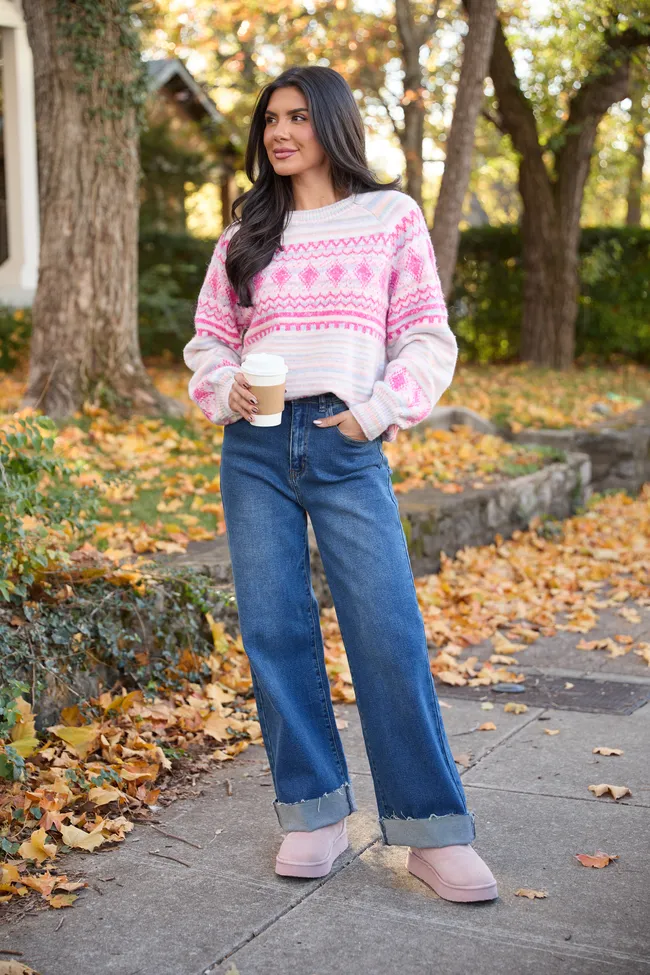 Pink Multi Ground Fair Isle Crewneck Sweater