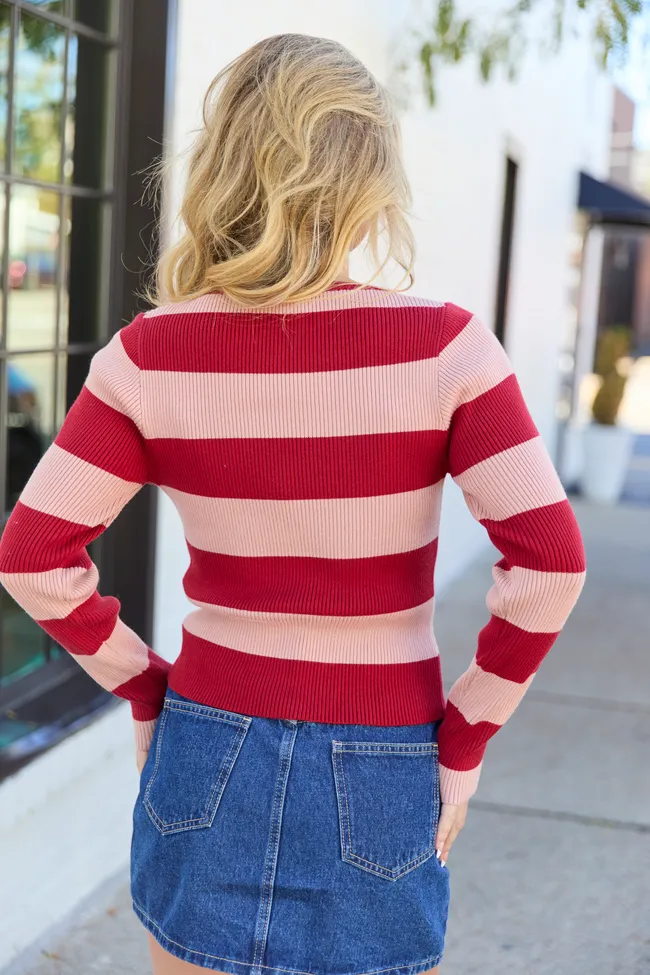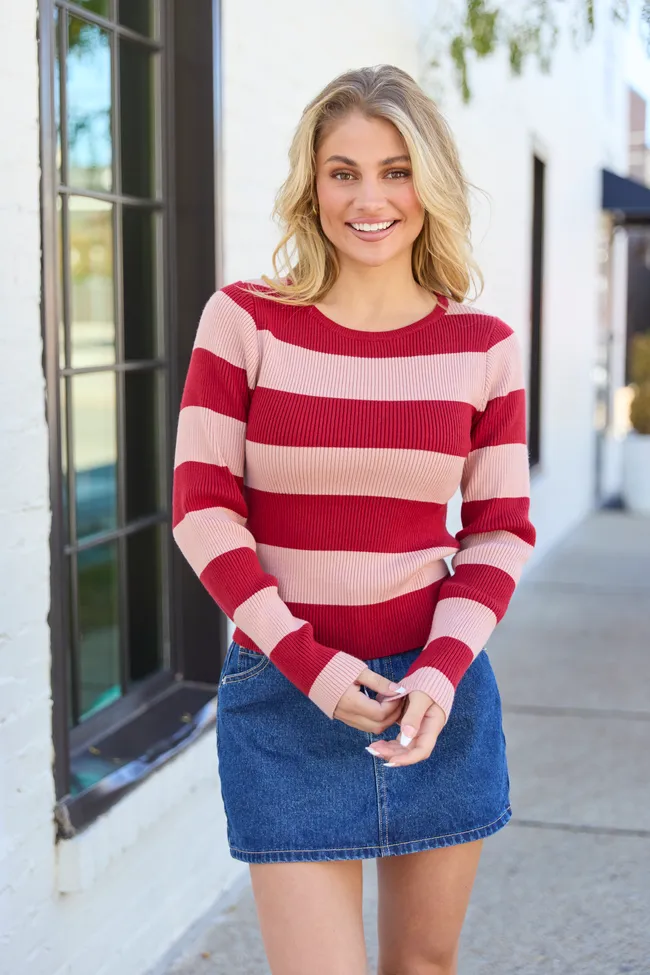 Red Striped Fitted Crewneck Sweater