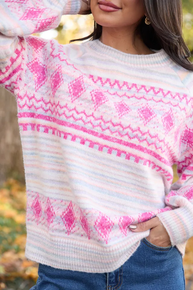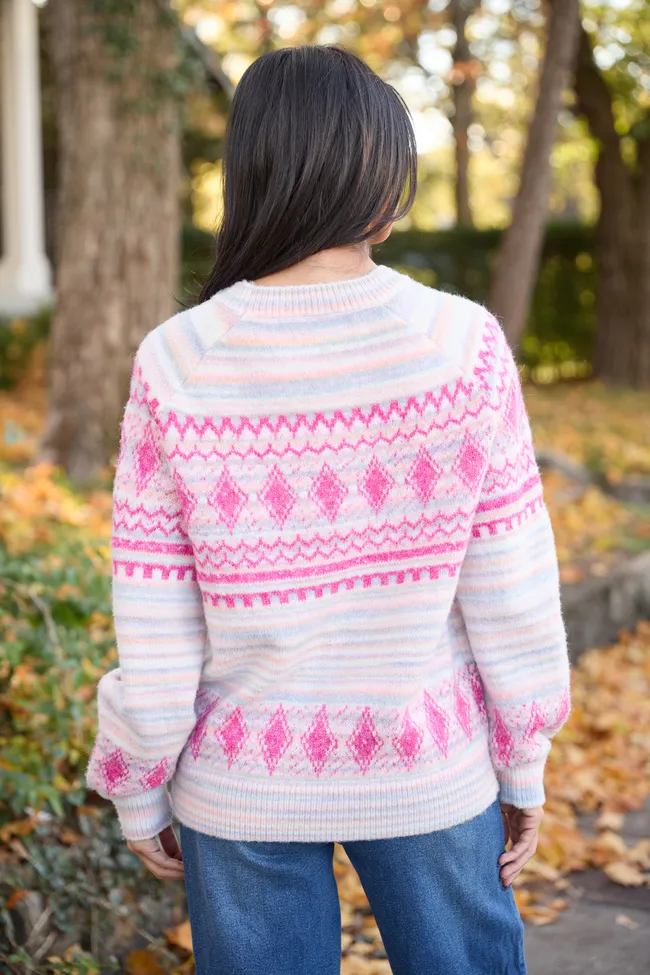 Pink Multi Ground Fair Isle Crewneck Sweater