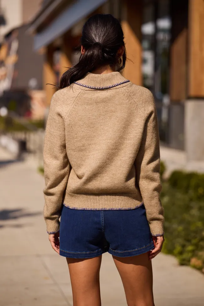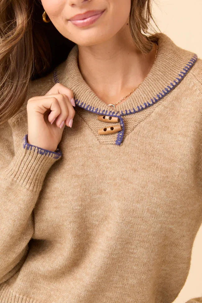 Brown V-Neck Toggle Button Sweater